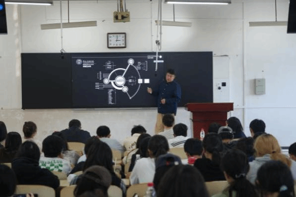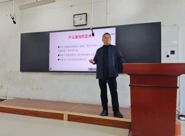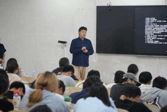 许毅博博士以《科技艺术——人工智能时代的创造力》为题,用生动的案例、直观的图片与视频,带领师生们走进科技艺术的奇妙世界。他详细分享了自己在《花开敦煌科技艺术展》《数字敦煌文化再生》等项目中的创作思路——如何用算法构建艺术形态、用数据传递文化内涵、用机械装置实现动态交互。“科技不是为了炫技,而是为了让艺术拥有更丰富的表达维度,让观众产生更深刻的情感共鸣。”许博士的这句话,让在场师生对科技艺术有了全新的认知。许博士还分享了他多年来在科技艺术领域的实践心得:“科技不是目的,而是表达艺术的新语言。在人工智能时代,创作者需要掌握这种新语言,但更要保持对美的敏锐感知和对人性的深刻理解。”
