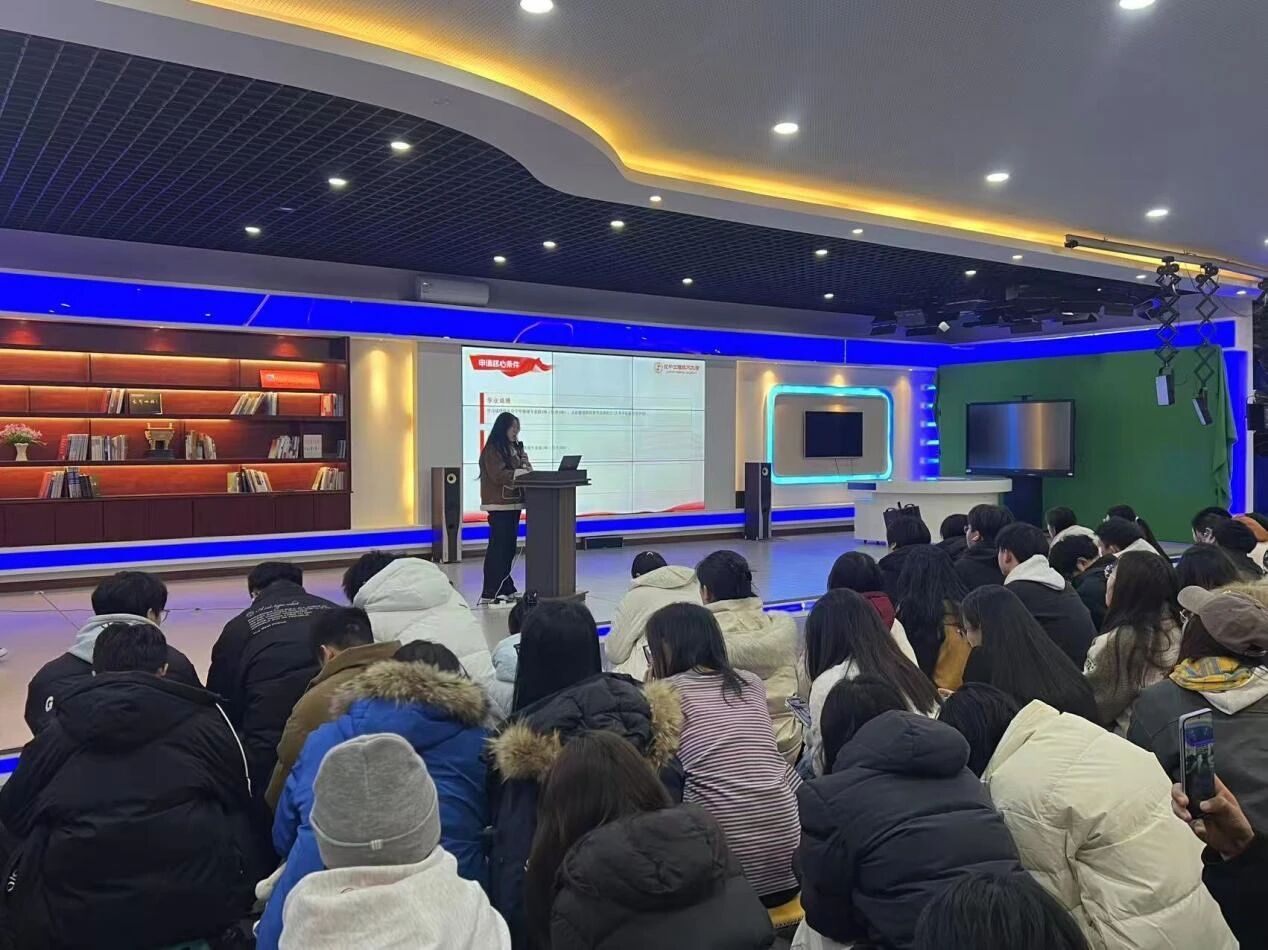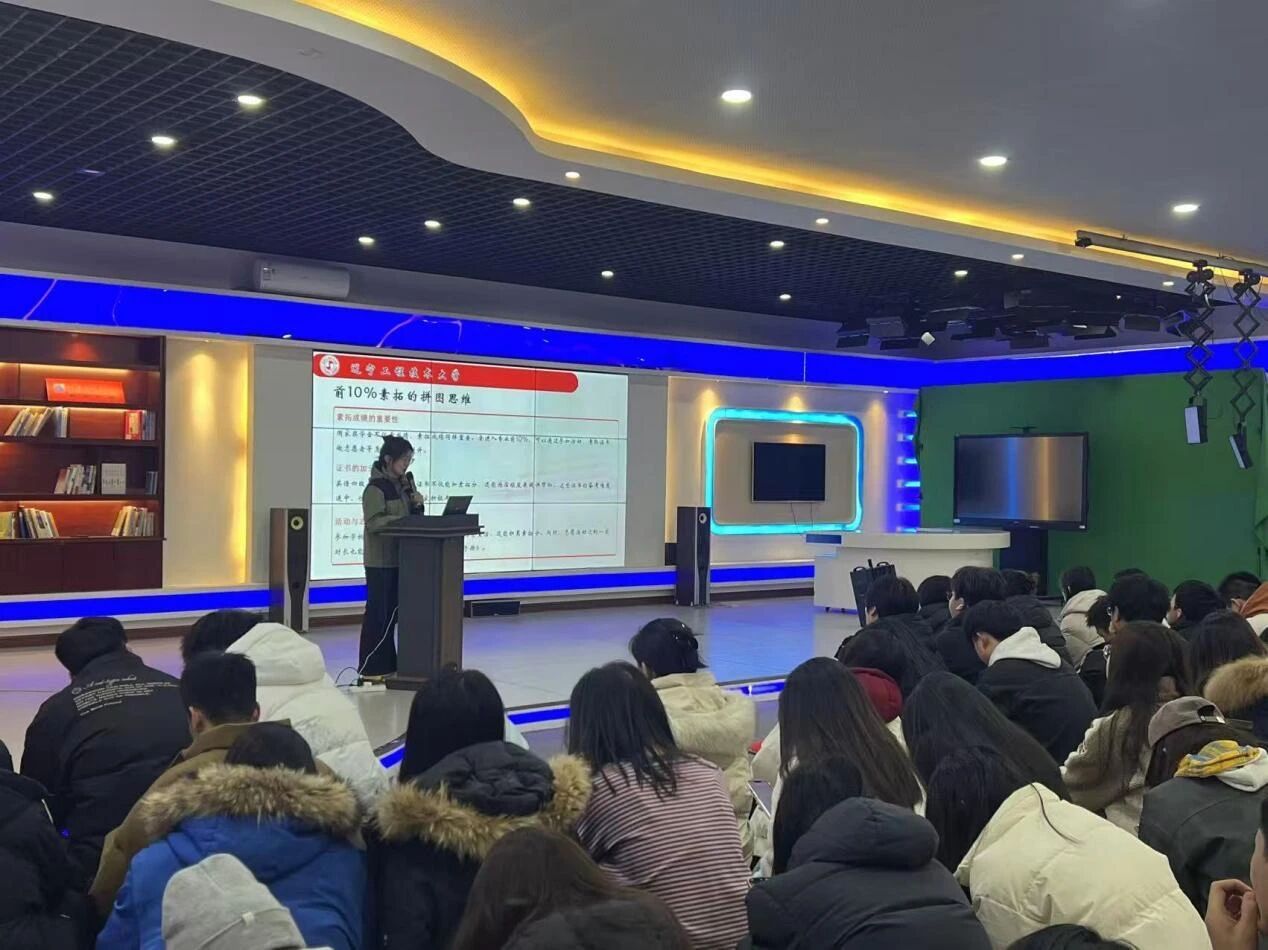 耿莉莉同学以“精准定位、全面突破”为核心,提出学业与综合素质双轨并进的策略。申请奖学金需以专业排名前10%为基准,课堂学习需紧扣教师思路、课后通过思维导图复盘知识体系,同时建议考取技能证书提升竞争力。实践层面,她鼓励同学们积极参与学院志愿服务、“返家乡”社会实践及专业学科竞赛,通过理论加实践实现能力跃升。 林鹏祺同学则从申请材料优化角度切入,他指出,个人陈述需以数据化荣誉清单为支撑,结合具体案例阐述学术成果与社会服务的联动性,同时强调时间轴的重要性,通过阶段目标拆解与动态调整,确保学业、实践与竞赛的协同推进。