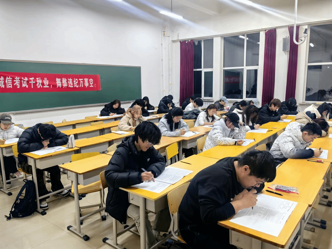 考前,学院强调考试纪律要求,引导学生以积极认真的态度参与本次模拟考试。严格参照大学英语四级考试标准,规范模拟考试的流程设置、时间分配与阅卷规则,从考场布置、监考安排到试卷收发、成绩统计,形成全链条闭环管理,让新生沉浸式体验标准化考试氛围。同时,通过主题班会、考前动员等形式,开展考风考纪专题教育,强调诚信应考的重要意义,引导学生树立“以诚信立身、以实力应试”的正确观念,从思想源头筑牢纪律防线。考试过程中,考场秩序井然,新生们精神饱满、专注作答。