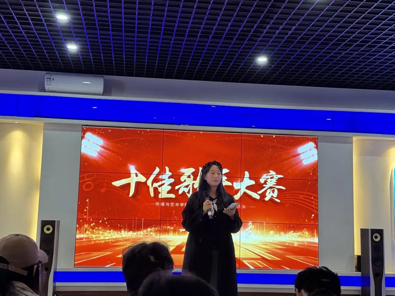 近日,文轩楼411室演播大厅座无虚席、掌声雷动,传媒与艺术学院十佳歌手大赛决赛在此精彩上演。经过前期初赛选拔,学院10名选手脱颖而出,站上决赛的舞台,为同学们带来了一场视听盛宴。